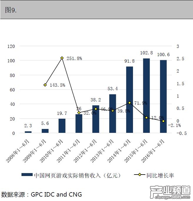 1.5.2中國網(wǎng)頁游戲市場實際銷售收入及增長率