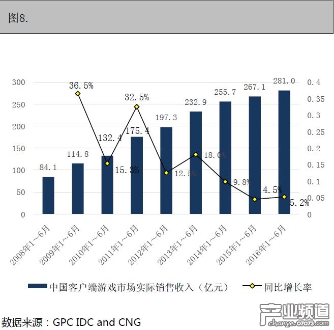 1.5.1中國客戶端游戲市場實際銷售收入及增長率