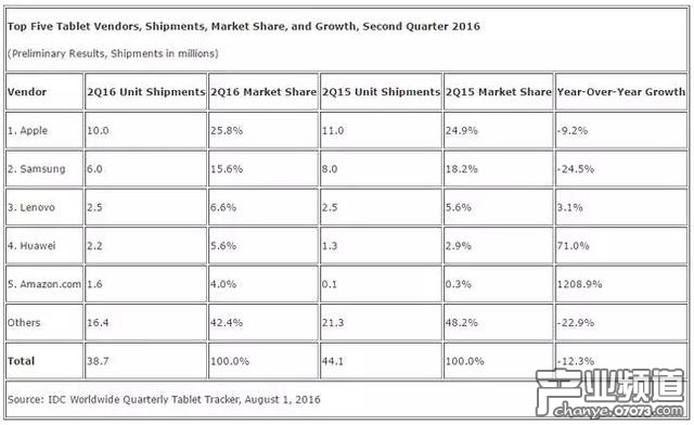 平板電腦Q2出貨總量3870萬臺 下滑12.3%