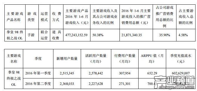 據(jù)了解掌趣科技目前主營業(yè)務(wù)是游戲的開發(fā)、發(fā)行和運(yùn)營,主營業(yè)務(wù)收入來源于移動(dòng)終端游戲、互聯(lián)網(wǎng)頁面游戲。其中手游營收804,529,901.66元,同比增長 237.84%,毛利率61.49%;頁游營收142,784,064.23元,同比下降22.57%,毛利率60.81%。其中手游《拳皇98終極之戰(zhàn)OL》在報(bào)告期內(nèi)收入477,243,152.59元,占游戲業(yè)務(wù)收入的50.38%,新增用487萬人,總充值流水11.72億左右(第一季度602,629,007元,第二季度570,082,272元)。