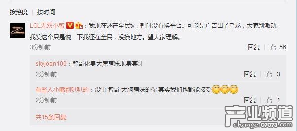 他還在評論中強調:我現(xiàn)在還在全民TV,暫時沒有換平臺。可能是廣告出了烏龍,大家別激動。我發(fā)這個只是說一下我還在全民,沒換地方。望大家理解。
