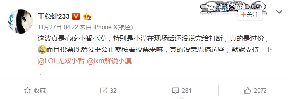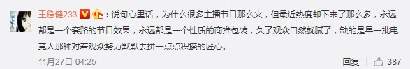 全民直播的隔壁老王就是屬于力挺小智的那一派,他在微博上表示既然是投票選出的最佳主播,那就按投票結(jié)果來好了,搞這些小動作沒有意思,心疼一波小智小漠。順帶著老王也發(fā)表了一下自己對起小點的看法,在他看來像起小點這一批的視頻作者根本沒有小智等早期作者的匠心,節(jié)目火了之后就永遠(yuǎn)一個套路,一個性質(zhì)的商推包裝,也難怪最近熱度降得那么快,這樣子敷衍觀眾能讓人喜歡才怪。
