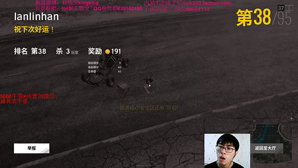 當時那盤游戲算得上是群魔亂舞了,一開始孫悟空跳學(xué)校撿裝備,在自己完全沒有暴露行蹤的情況下,就已經(jīng)有人一直往他這邊開槍。好不容易逃出了學(xué)校,開了一輛“蹦蹦”往圈子趕的時候,迎面飛來一輛汽車,孫悟空當機立斷選擇跳車殺人,結(jié)果槍都沒拔出來就顯示自己被對面撞死了。這就徹底把猴哥氣到了,他不停地調(diào)出后臺反復(fù)看回放,在確認自己確實是在沒被撞到的情況下被判定了死亡后,他直接點擊了作弊舉報,還無奈地表示,你們開掛牛,我也去買外掛還不行嗎?