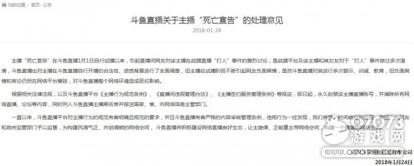 斗魚公告中,對(duì)于死亡宣告被永久封禁的解釋是“主播在試播階段不斷引起網(wǎng)友負(fù)面輿情,雖然斗魚直播對(duì)其進(jìn)行多次警示、訓(xùn)誡、教育,但負(fù)面輿情和言論仍然在網(wǎng)絡(luò)平臺(tái)蔓延,對(duì)斗魚直播整個(gè)網(wǎng)絡(luò)環(huán)境造成惡劣影響。”
