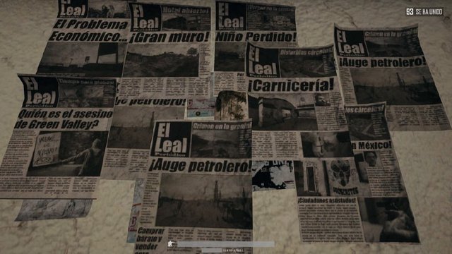 和沙漠地圖中的地名一樣,這些報(bào)紙都是西班牙語(yǔ)(墨西哥曾經(jīng)是西班牙的殖民地),翻譯過(guò)來(lái)的大概內(nèi)容是:石油、經(jīng)濟(jì)危機(jī)、謀殺、犯罪、監(jiān)獄暴動(dòng)。