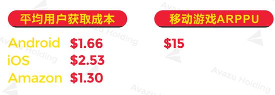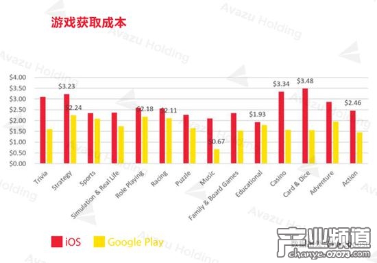 Google Play平臺最高為策略類$2.24,其次是角色扮演類$2.18和賽車類$2.11,最低為音樂類$0.67。