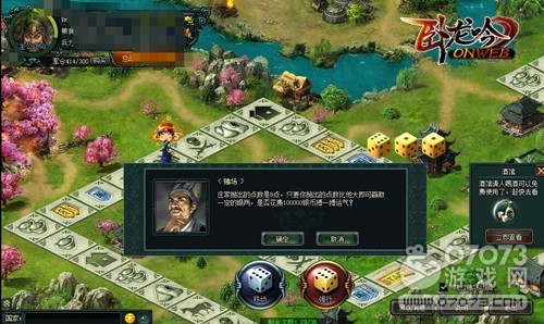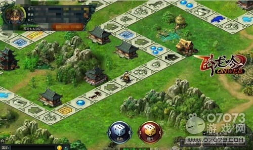 小時候玩過大富翁的玩家們對《臥龍吟》的游歷系統(tǒng)一定不會陌生,游歷系統(tǒng)在玩家達(dá)到60級的時候開放,通過擲色子來決定自己的行動步數(shù),每走一次都會有可能遇到各種事件。色子每隔一段時間恢復(fù)一個,最多存36個,玩家可以自由分配時間使用。每行動一次累計CD5分鐘,累計1小時會進(jìn)入行動冷卻。