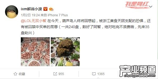 小漠之前在微博上宣布,遠(yuǎn)赴葫蘆島去吃小智,當(dāng)時(shí)許多網(wǎng)友以為只是朋友見面,并沒想太多。但是昨天晚上,小漠發(fā)出了這樣一條微博:在今天,葫蘆島人終將回想起,被浙江美食天團(tuán)支配的恐懼,還有被囚禁中買單的屈辱(一共240盤,數(shù)好了阿智,絕對(duì)吃完不浪費(fèi)哦,先來35盤助興)。