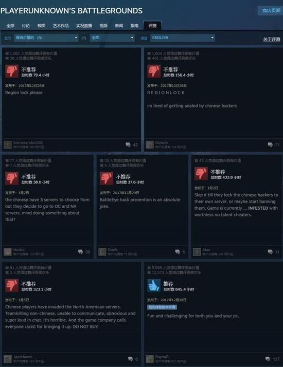 周,月,三個月,永遠(yuǎn)不變的是chinese hackers,中國玩家的形象在這款絕地求生游戲里被人認(rèn)為是作弊者。丟人嗎?這算不算有史以來最大的一次Steam平臺上中國玩家被人抵制的畫面,很多國人玩家苦心經(jīng)營了許久的steam上的聲望怕不是一瞬間土崩瓦解。