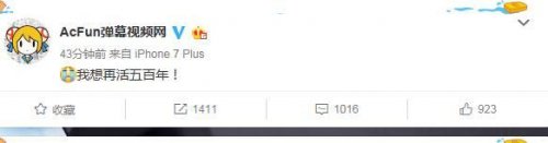 今日(2月2日),A站發(fā)微博稱(chēng):我想再活五百年!