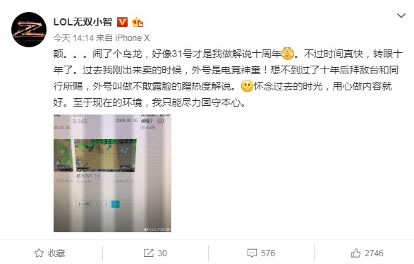 全民直播的小智,絕對是LOL直播圈中幾個(gè)大佬主播之一了,從08年第一次上傳解說視頻開始,他已經(jīng)足足在電競?cè)χ忻罎L打了十年,始終處于一線行列的他足以稱得上是“電競常青樹”了。今天,他就在微博上發(fā)表了一段自己十年來的心路感言,心有戚戚的他直接表示因?yàn)榄h(huán)境的影響,他現(xiàn)在只希望能盡力做到固守本心,過去真的回不去了。