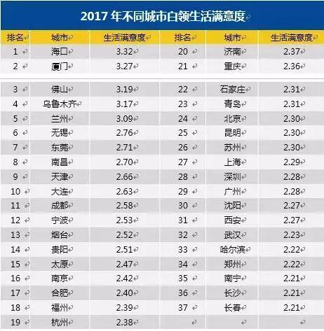 在城市生活滿意度方面,北上廣深雖然工作機會多、薪酬高,但也伴隨著高壓力、高競爭,遠遠比不過???、廈門等后起之秀。