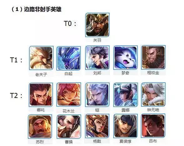 T2梯隊里同上期沒有太大的變化,其實現(xiàn)版本能選擇的邊路英雄真的非常多。花木蘭、鎧、哪吒這三個英雄的強度一直不低,吃不吃香更傾向于射手和刺客能不能上場,他們在對線到坦克邊路時往往討不到好處。曹操、楊戩這兩個英雄在路人局還是比較吃香的。