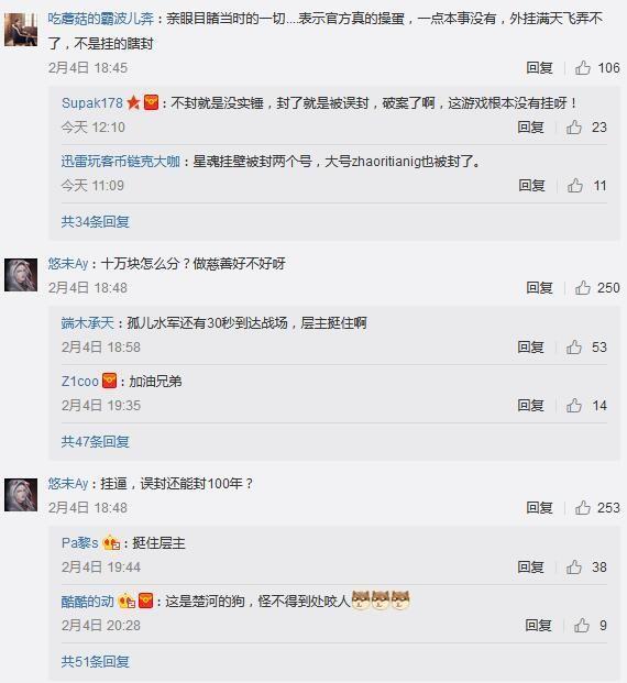 這條微博發(fā)出后不久,網(wǎng)友們在評論區(qū)中很快吵了起來。有部分網(wǎng)友認為星魂這次是被官方誤封,畢竟他是得到過大賽榮譽的選手,似乎沒有開掛的必要;而另一部分網(wǎng)友則認為,現(xiàn)在星魂都已經(jīng)被封號居然還不算實錘,支持他的不是腦殘粉就是水軍。