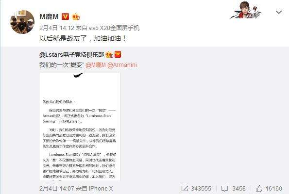 而鹿晗一經(jīng)宣布,Lstars戰(zhàn)隊(duì)就成為家喻戶(hù)曉的俱樂(lè)部。