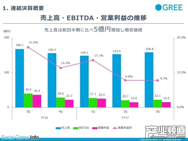 日本GREE公司公布了2025財(cái)年三個(gè)季度累計(jì)財(cái)報(bào)(2025年7月至2025年3月),三個(gè)季度的營(yíng)收合計(jì)461億日元(約合人民幣28.5億,同比減少15%),營(yíng)業(yè)利潤(rùn)為55億日元(約合人民幣3.4億,同比減少53.5%),經(jīng)常利潤(rùn)為71億日元(約合人民幣4.4億,同比減少35.2%),凈利潤(rùn)為142億日元(約合人民幣8.8億,同比增長(zhǎng)124%),整體成減益增收狀態(tài)。