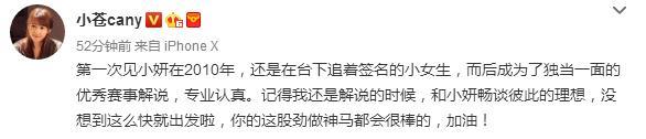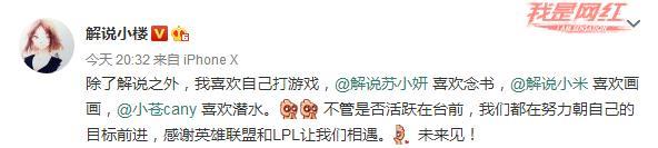 早已從解說界退隱的小樓在微博提及了幾位好姐妹,希望大家共同進(jìn)步。