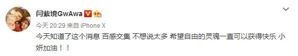 娃娃:"今天知道了這個(gè)消息 百感交集 不想說太多 希望自由的靈魂一直可以獲得快樂 小妍加油!!"可謂是千言萬語都在一句祝福之中。
