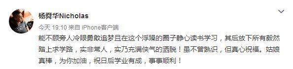 超人蛙:"能不顧旁人冷眼勇敢追夢(mèng)且在這個(gè)浮躁的圈子靜心讀書學(xué)習(xí),其后放下所有毅然踏上求學(xué)路,實(shí)非常人,實(shí)乃充滿俠氣的灑脫!雖不曾熟識(shí),但真心祝福。姑娘真棒,為你加油,祝日后學(xué)業(yè)有成,事事順利!"這是要把小妍姐姐夸上天的節(jié)奏啊!
