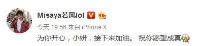 若風(fēng):"為你開心,小妍,接下來加油。 祝你愿望成真。"你開心了,不怕高學(xué)成不開心嗎?