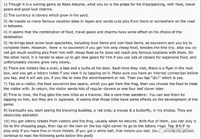 5.小青蛙旅行回來會帶紀(jì)念品哦,食物和物品都有。不過除了第一次旅行之外,如果你只給他買便宜的食物和裝備的話,他們就不會帶東西回家。(好任性...
