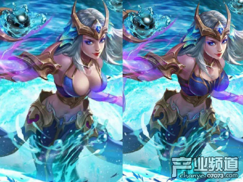 下圖武則天的海洋之心皮膚壁紙同樣被和諧過,左邊是和諧之前的,右邊是和諧之后的,可以發(fā)現(xiàn),增加的布料同樣很多,完全蓋住了武則天的身材。