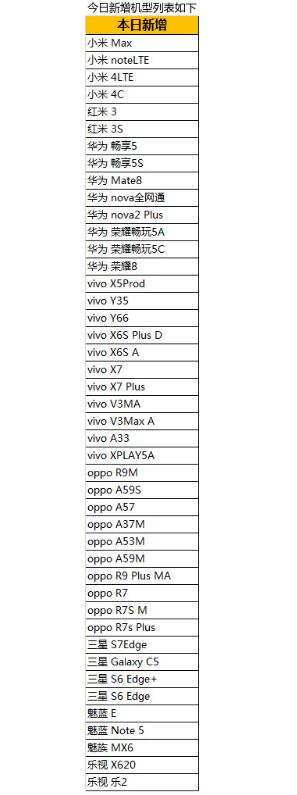 機(jī)型方面,據(jù)觀察,仍然是小米(包括紅米)、華為、vivo、oppo等主流品牌的主流機(jī)型,當(dāng)然也包括一部分如三星、魅族和樂(lè)視等機(jī)型。