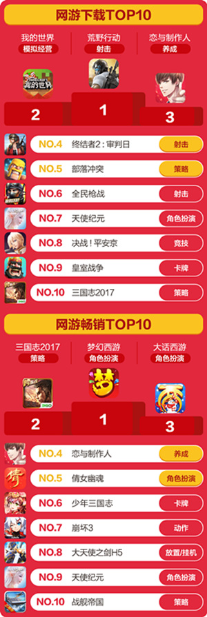 1月份最值得關(guān)注的新游,是由游族網(wǎng)絡(luò)出手打造的角色扮演游戲《天使紀(jì)元》,新游下載、暢銷雙榜第一。說到游族網(wǎng)絡(luò),我們就不得不提到其在游戲長(zhǎng)線運(yùn)營(yíng)方面的優(yōu)勢(shì)。我們不止一次見到,假期過后的網(wǎng)游暢銷榜上,出現(xiàn)《少年三國(guó)志》的身影。版本節(jié)奏、運(yùn)營(yíng)活動(dòng)和營(yíng)銷事件的配合,讓游族網(wǎng)絡(luò)的產(chǎn)品擁有了長(zhǎng)久的生命力?!短焓辜o(jì)元》邀請(qǐng)了劉亦菲作為代言人;在音樂、畫面等方面則是由日、韓大師操刀,游戲品質(zhì)自然無可挑剔。游戲內(nèi)的競(jìng)技玩法和社交互動(dòng)體驗(yàn),是《天使紀(jì)元》戰(zhàn)勝其他角色扮演游戲的關(guān)鍵所在。春節(jié)假期馬上就要來臨,在游族網(wǎng)絡(luò)的力推之下,我們相信《天使紀(jì)元》能夠在接下來的時(shí)間里保持自己的上升勢(shì)頭。