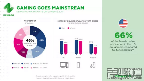 Newzoo:女性游戲用戶達(dá)46% 性別比接近1:1