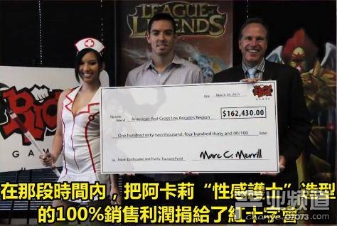 他們并沒(méi)有做太多的事情,大家應(yīng)該知道阿卡麗的一款皮膚:性感護(hù)士,僅僅把這款皮膚所有的利潤(rùn)捐獻(xiàn)了出去。