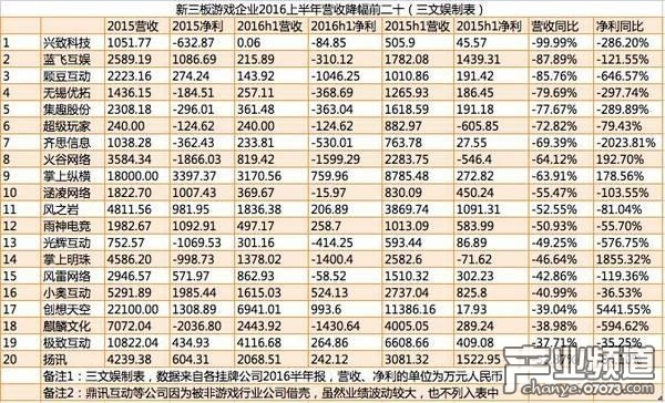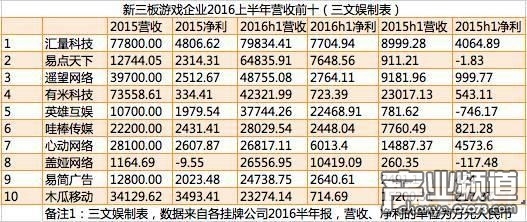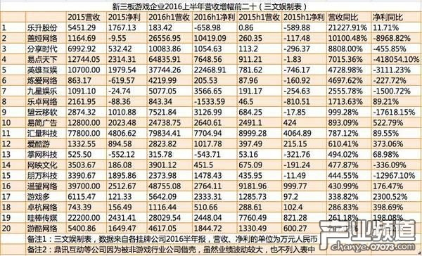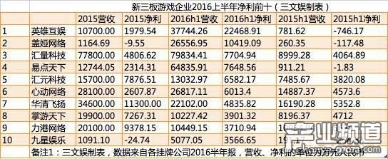 新三板游戲公司業(yè)績