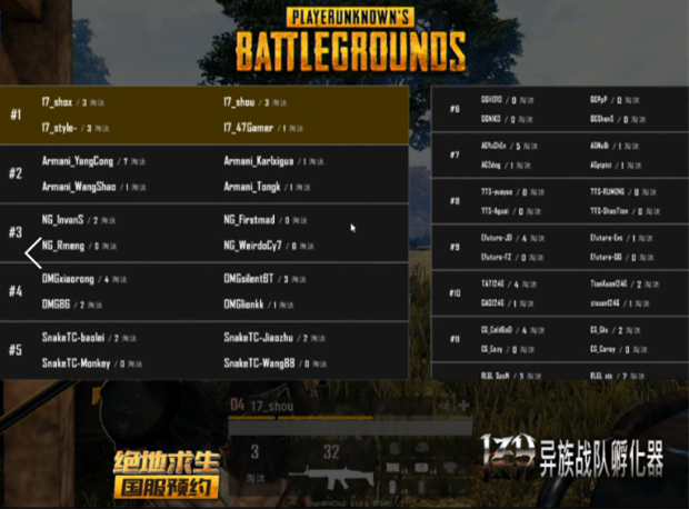 決賽圈,OMG利用多輛汽車制造了一個很好的掩體,但還是處于多隊圍攻的狀態(tài),反觀Armani、17戰(zhàn)隊都處于一個比較有利的地形之中,無奈OMG還是因為要面對的隊伍過多,導(dǎo)致隊員先后被擊倒。