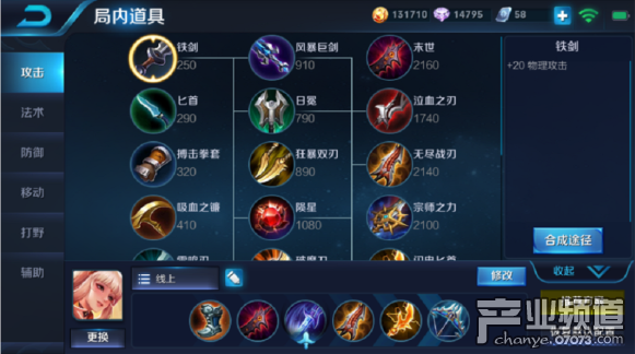 ②線上1 攻速鞋 2 末世 3 純凈蒼穹 4無盡戰(zhàn)刃 5閃電匕首 6破甲弓