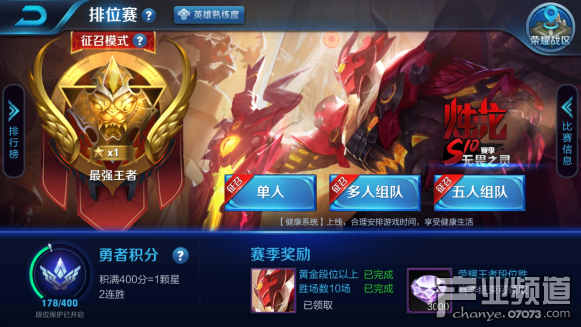 《王者榮耀》S10賽季正式開啟,王者峽谷又開始熱鬧非凡。一般來(lái)說(shuō),第一天往往是技術(shù)型主播爭(zhēng)分奪秒上分的日子,也相當(dāng)考驗(yàn)主播個(gè)人的技術(shù),因?yàn)檫@個(gè)階段,撞車慘案頻發(fā),高手對(duì)決差之毫厘就有可能與最快上王者失之交臂。觸手直播的雙系統(tǒng)榮耀百星王者主播GM_洛夢(mèng),僅用6個(gè)小時(shí),22把就登頂最強(qiáng)王者,成為S10賽季王者第一人。