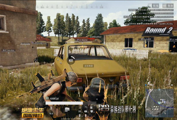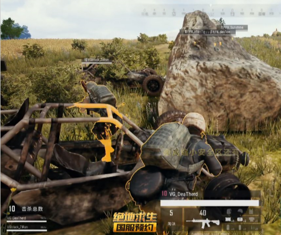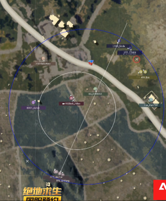 決賽圈僅有FPX和LYG隊伍保存還算完整,而VG兩名隊員用車輛做掩體堅守安全區(qū)中心。