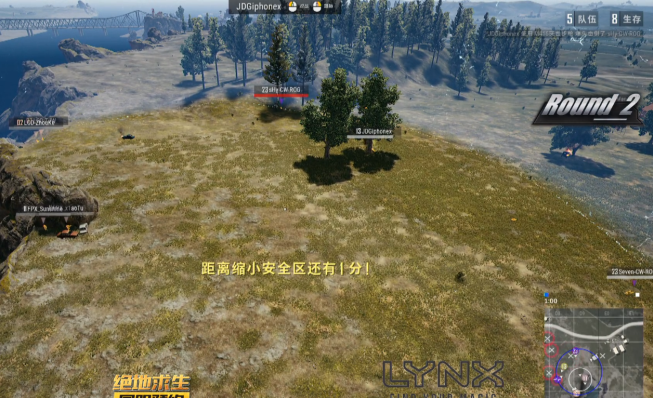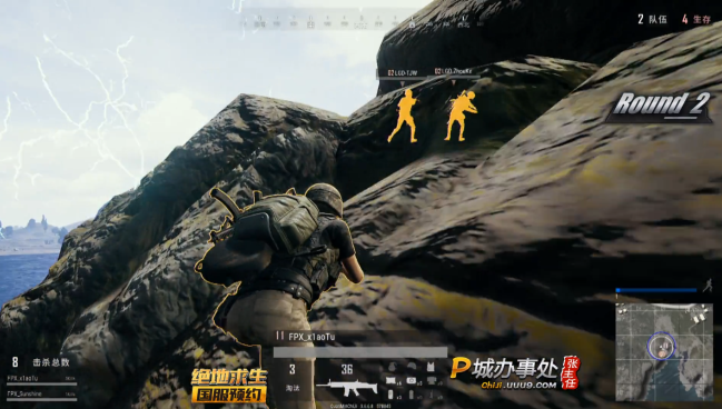 決賽圈,F(xiàn)PX卡住了海邊巖石處,將地圖左上角的隊伍堵住了安全區(qū)外,此時僅剩余5支隊伍,F(xiàn)PX所處的地形非常有利。