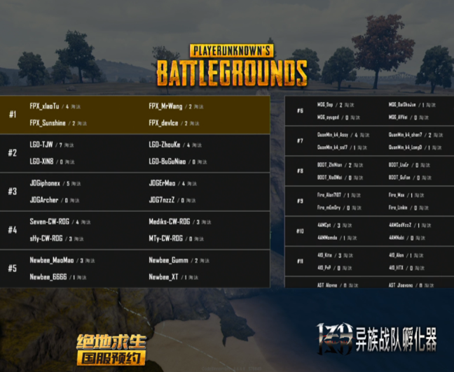 最后FPX駕駛車輛做誘餌,其他隊伍架槍射擊將處于中心點的VG成功團滅,順利吃雞。