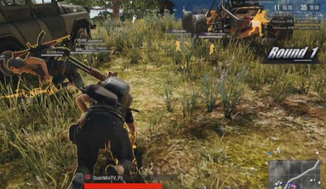 安全區(qū)刷新后,quanmin戰(zhàn)隊利用車輛作為掩體想擊殺面前的FIR戰(zhàn)隊,卻意外被對方手雷炸倒3人,遭到團滅。