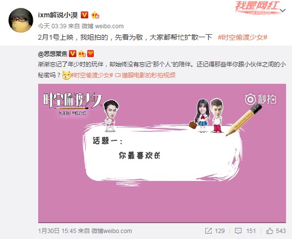 昨天凌晨,LOL知名解說小漠在微博上轉(zhuǎn)發(fā)了一條有關(guān)電影《時(shí)空偷渡少女》的微博,并配文表示這是自己姐姐導(dǎo)演作品,希望大家能幫忙擴(kuò)散下。消息一出,直接炸懵圈了很多小漠粉絲,紛紛留言沒想到小漠居然還有個(gè)導(dǎo)演姐姐,也有人調(diào)侃讓小漠別宣傳了,反正你姐也不差你這過氣主播的幾十個(gè)粉絲。