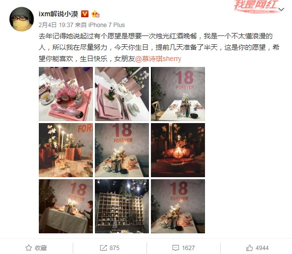 去年記得她說起過有個(gè)愿望是想要一次燭光紅酒晚餐,我是一個(gè)不太懂浪漫的人,所以我在盡量努力,今天你生日,提前幾天準(zhǔn)備了半天,這是你的愿望,希望你能喜歡,生日快樂,女朋友@慕詩琪sherry 。