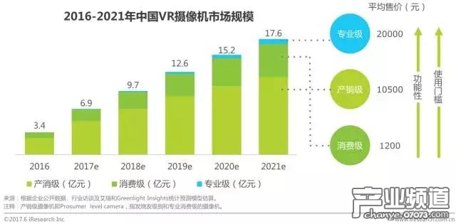 在中國,VR全景攝像機(jī)和其他VR攝像機(jī)正在緩慢的觸達(dá)消費(fèi)者和專業(yè)市場。對于消費(fèi)級(jí)攝像機(jī)來說,由于大眾對VR技術(shù)的意識(shí)薄弱,中國市場相比全球市場的銷量會(huì)更低。由于企業(yè)級(jí)應(yīng)用的增加,2025年起VR攝像機(jī)的銷售量會(huì)開始快速上漲。產(chǎn)消級(jí)別的攝像機(jī)針對小型工作室或者獨(dú)立制作人,這部分應(yīng)用未來也會(huì)增長迅速。專業(yè)級(jí)的攝像機(jī)只會(huì)被大規(guī)模生產(chǎn)的廠房所使用,主要采取的是出租模式,所以預(yù)計(jì)這類功能豐富的VR攝像機(jī)的銷量將會(huì)保持一個(gè)穩(wěn)定的增速。