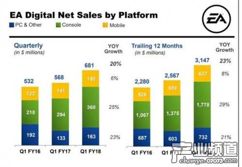 EA公司的幾款老作品表現(xiàn)特別突出,終極團(tuán)隊(duì)模式為EA Sports游戲在第一季度帶來了用戶數(shù)量同比增加11%的綜合增長(zhǎng)率。除此之外,PC版的《模擬人生4》的月活躍用戶較去年同期增加了30%,《戰(zhàn)地1》“在第一季度結(jié)束時(shí),用戶數(shù)量增加超過了2100萬人”。另外,《FIFA》手游版玩家基數(shù)增至9500萬,《NBA Live》手游用戶數(shù)也已超過7000萬。不過,EA沒有在財(cái)報(bào)中提及此前期待甚高但評(píng)價(jià)一般的《質(zhì)量效應(yīng):仙女座》(Mass Effect Andromeda)表現(xiàn)如何,這款作品在上個(gè)季度接近尾聲時(shí)才剛剛發(fā)售。