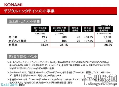 數(shù)字娛樂(lè)事業(yè)部:銷(xiāo)售額為289億日元(同比前年同期增長(zhǎng)33.5%),部門(mén)利潤(rùn)為104億日元(同比增長(zhǎng)37.8%)。