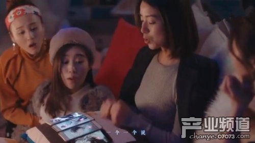 第二個廣告是閨蜜聚會,每個閨蜜都在展示自己的老公多么多么有錢,這個給買名牌包包,那個給買鉆戒,最后女主掏出四個手機(jī)炫耀自己的四個“老公”。顯示了戀與玩家攀比和愛慕虛榮。