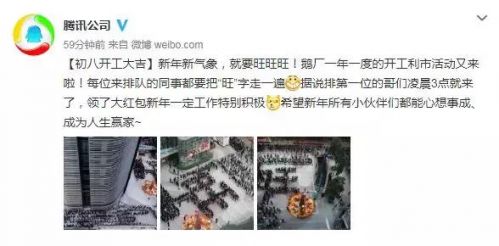 而每年騰訊派發(fā)“開工利是”的場面都頗受大伙兒關注。騰訊公司今日在微博上分享了騰訊員工排隊領取開工紅包的場景。