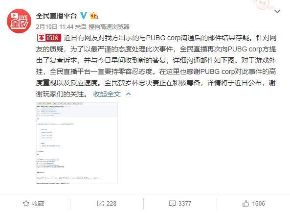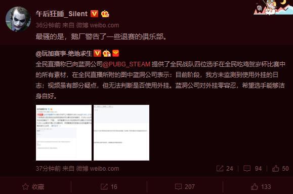 全民戰(zhàn)隊(duì)為了表示公平,將比賽視頻送檢藍(lán)洞公司力證清白。雖然藍(lán)洞方面得出的結(jié)論是全民戰(zhàn)隊(duì)的隊(duì)員們并沒有非法使用外掛,但是眾多網(wǎng)友紛紛表示難以置信。這時(shí)也有許多戰(zhàn)隊(duì)的教練以及知名的游戲主播開始為全民戰(zhàn)隊(duì)說話。并且騰訊警告了一些擅自退賽的戰(zhàn)隊(duì)。