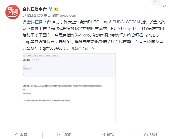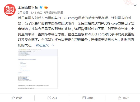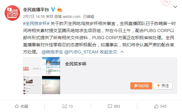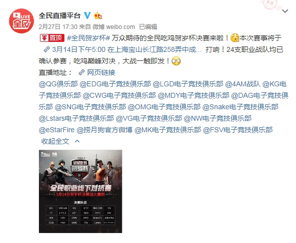 這次的全民賀歲杯算得上是好事多磨了,有網(wǎng)友就調(diào)侃,等到3月14號決賽正式開打,賀歲杯都成迎春杯了。不過塞翁失馬焉知非福,在外掛風(fēng)波中無辜躺槍的全民直播在整件事中展現(xiàn)了出色的公關(guān)能力,不僅自發(fā)聯(lián)系藍(lán)洞和騰訊請求審核選手錄像,還主動(dòng)提議舉辦線下賽。相信無論此次線下賽結(jié)果如何,全民直播的這份態(tài)度都足以令人起敬,而且這國內(nèi)首次的吃雞線下比賽也必將在未來深刻影響著國內(nèi)整個(gè)吃雞賽事的發(fā)展。