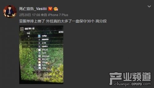 死亡宣告又膩害了,今天死亡宣告在自己的微博炫耀自己玩《絕地求生》亞服solo單排登頂。死亡宣告表示這次沖分曾被各種外掛擊殺,還好昨天更新沒什么掛才順利登頂。