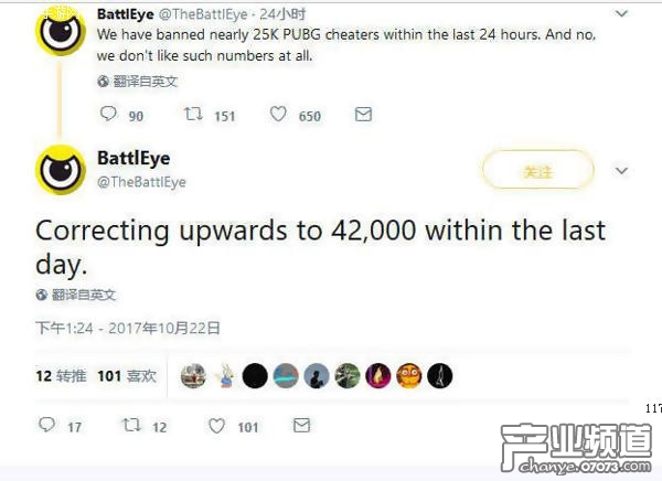 昨日《絕地求生:大逃殺》官方反作弊系統(tǒng)BattlEye發(fā)推表示,在過去的24小時內(nèi)游戲已封禁了2.5萬個作弊賬號,今日他們再次更新數(shù)據(jù),過去一天里,游戲就封禁了4.2萬個開掛作弊賬號。