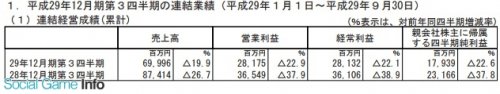 日本Gungho公司今天公布了2025年12月期第3四半期累計(jì)連結(jié)財(cái)報(bào)(2025年1月1日至2025年9月30日),三個(gè)季度的銷售額為699.96億日元(同比前年同期減少19.9%),營業(yè)利潤為281.75億日元(同比減少22.9%),經(jīng)常利潤為281.32億日元(同比減少22.1%),凈利潤為179.39億日元(同比減少22.6%),整體呈現(xiàn)減收減益狀態(tài)。
